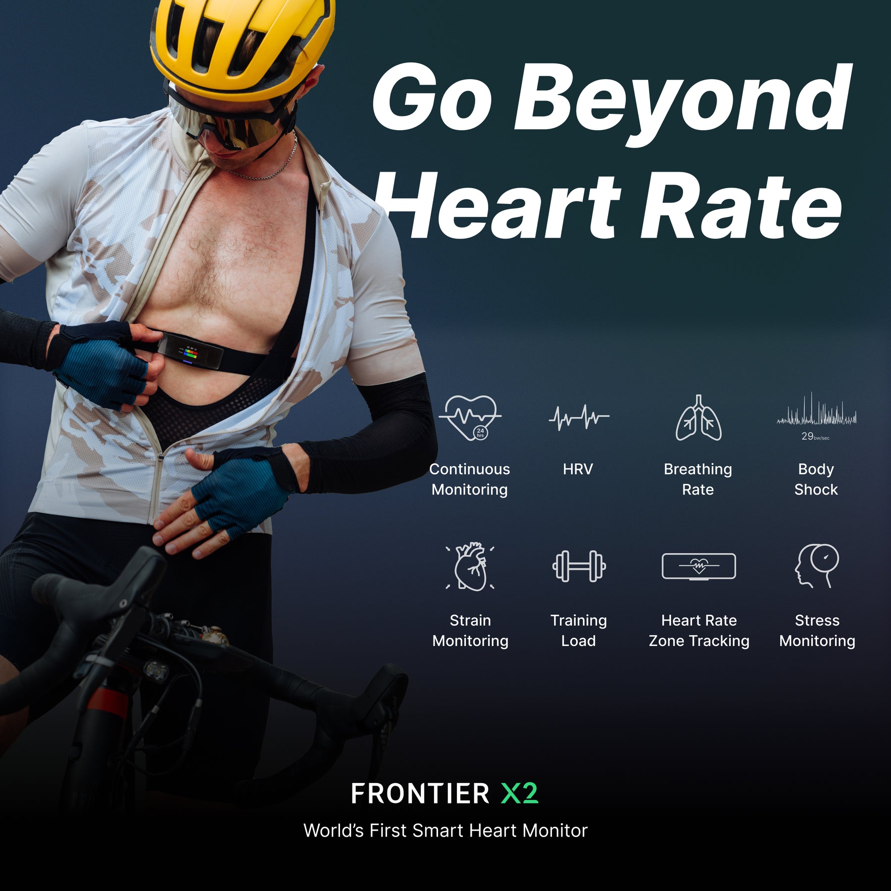 Worn directly over your heart, the Frontier X2 uses a soft, adjustable strap for all-day comfort and accurate readings, even during workouts or sleep.
